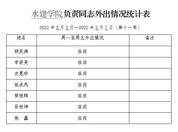 » best365网页版登录官网负责同志外出情况统计表(第十一周)