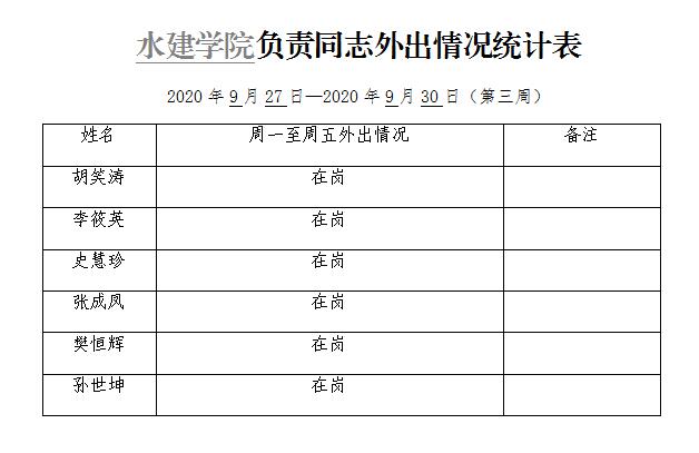 » best365网页版登录官网负责同志外出情况统计表(第三周)