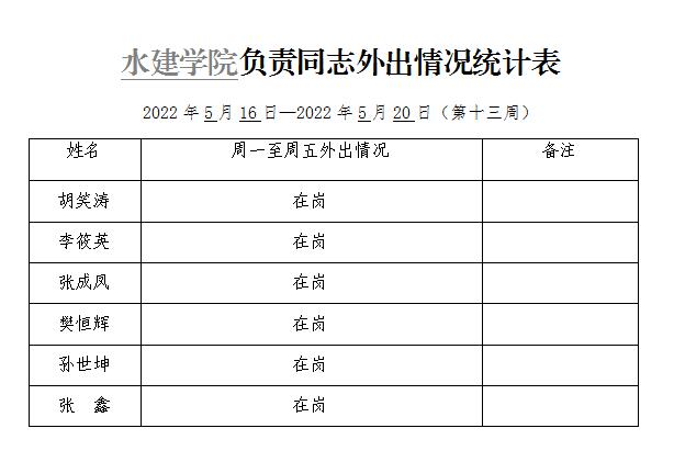 » best365网页版登录官网负责同志外出情况统计表(第十三周)