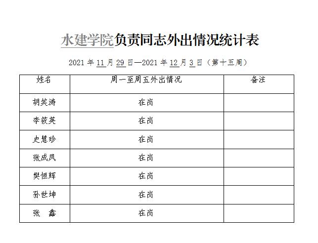 » best365网页版登录官网负责同志外出情况统计表(第十五周)