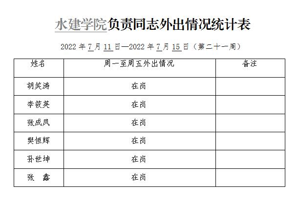 » best365网页版登录官网负责同志外出情况统计表(第二十一周)