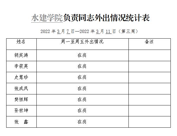 » best365网页版登录官网负责同志外出情况统计表(第三周)