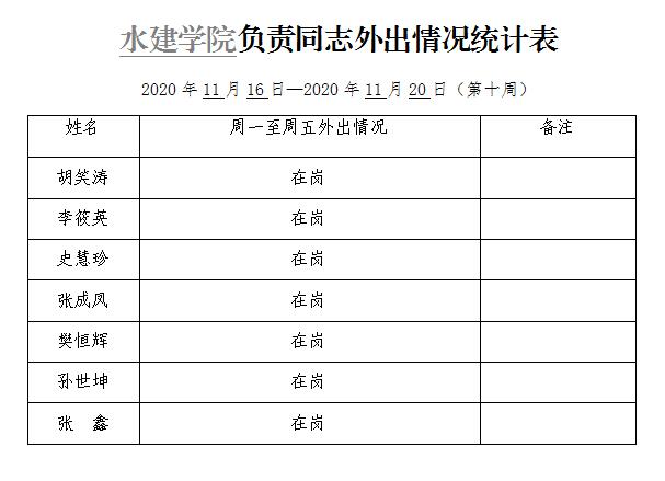» best365网页版登录官网负责同志外出情况统计表(第十周)