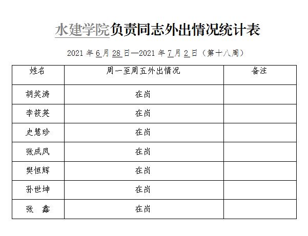 » best365网页版登录官网负责同志外出情况统计表(第十八周)