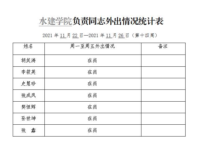 » best365网页版登录官网负责同志外出情况统计表(第十四周)