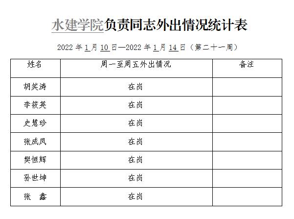 » best365网页版登录官网负责同志外出情况统计表(第二十一周)