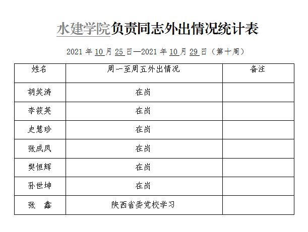 » best365网页版登录官网负责同志外出情况统计表(第十周)