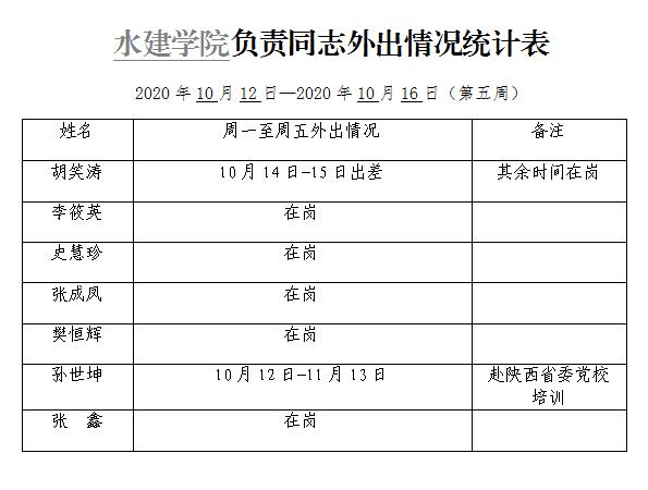 » best365网页版登录官网负责同志外出情况统计表(第五周)