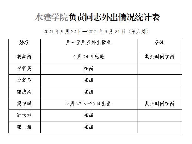 » best365网页版登录官网负责同志外出情况统计表(第六周)