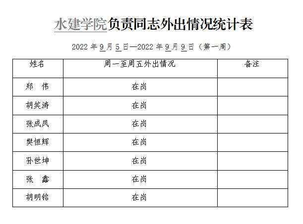 » best365网页版登录官网负责同志外出情况统计表(第一周)