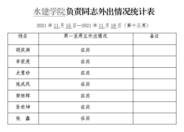 » best365网页版登录官网负责同志外出情况统计表(第十三周)