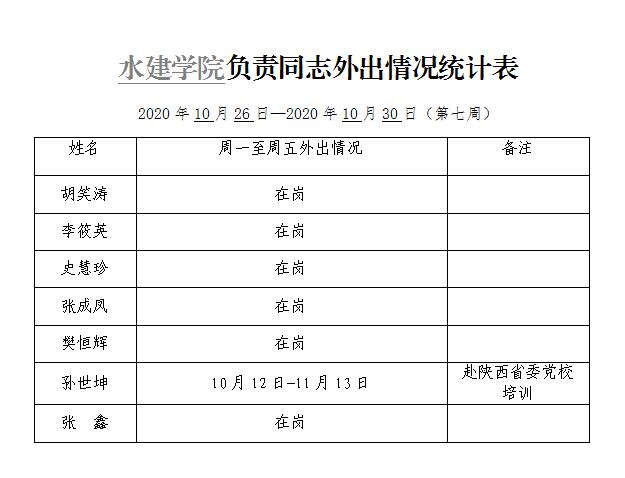 » best365网页版登录官网负责同志外出情况统计表(第七周)