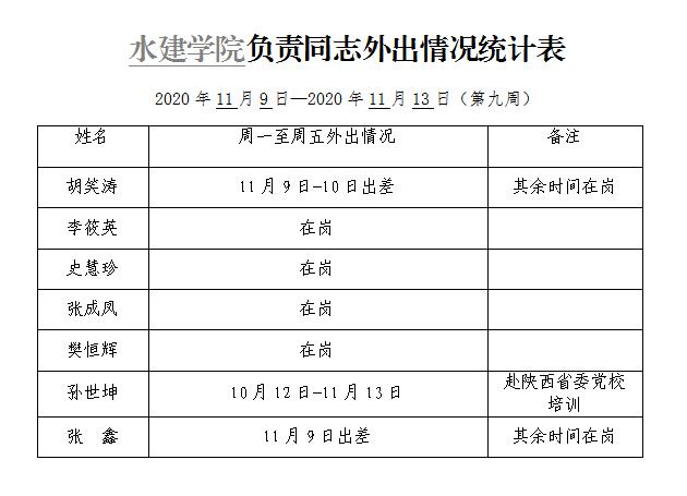 » best365网页版登录官网负责同志外出情况统计表(第九周)