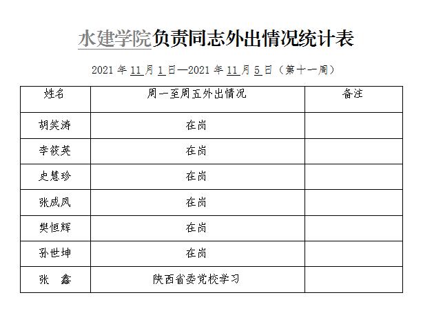 » best365网页版登录官网负责同志外出情况统计表(第十一周)