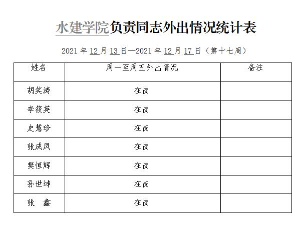 » best365网页版登录官网负责同志外出情况统计表(第十七周)