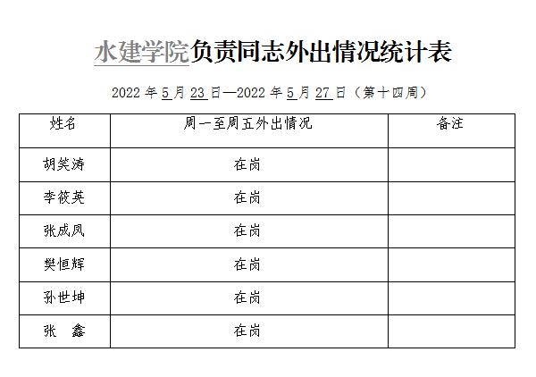 » best365网页版登录官网负责同志外出情况统计表(第十四周)