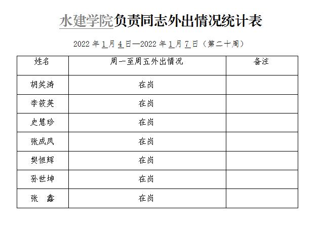 » best365网页版登录官网负责同志外出情况统计表(第二十周)