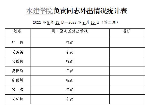 » best365网页版登录官网负责同志外出情况统计表(第二周)