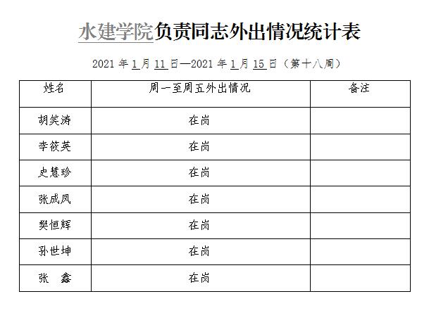 » best365网页版登录官网负责同志外出情况统计表(第十八周)