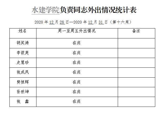 » best365网页版登录官网负责同志外出情况统计表(第十六周)