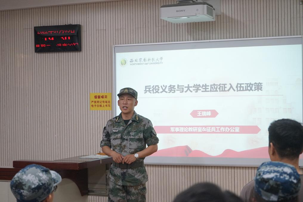 为鼓励在校学生应征入伍服务国防建设,7月5日,我院在八号教学楼召开大学生征兵宣讲会,会议由军事理论教研室王瑞峰老师主讲。