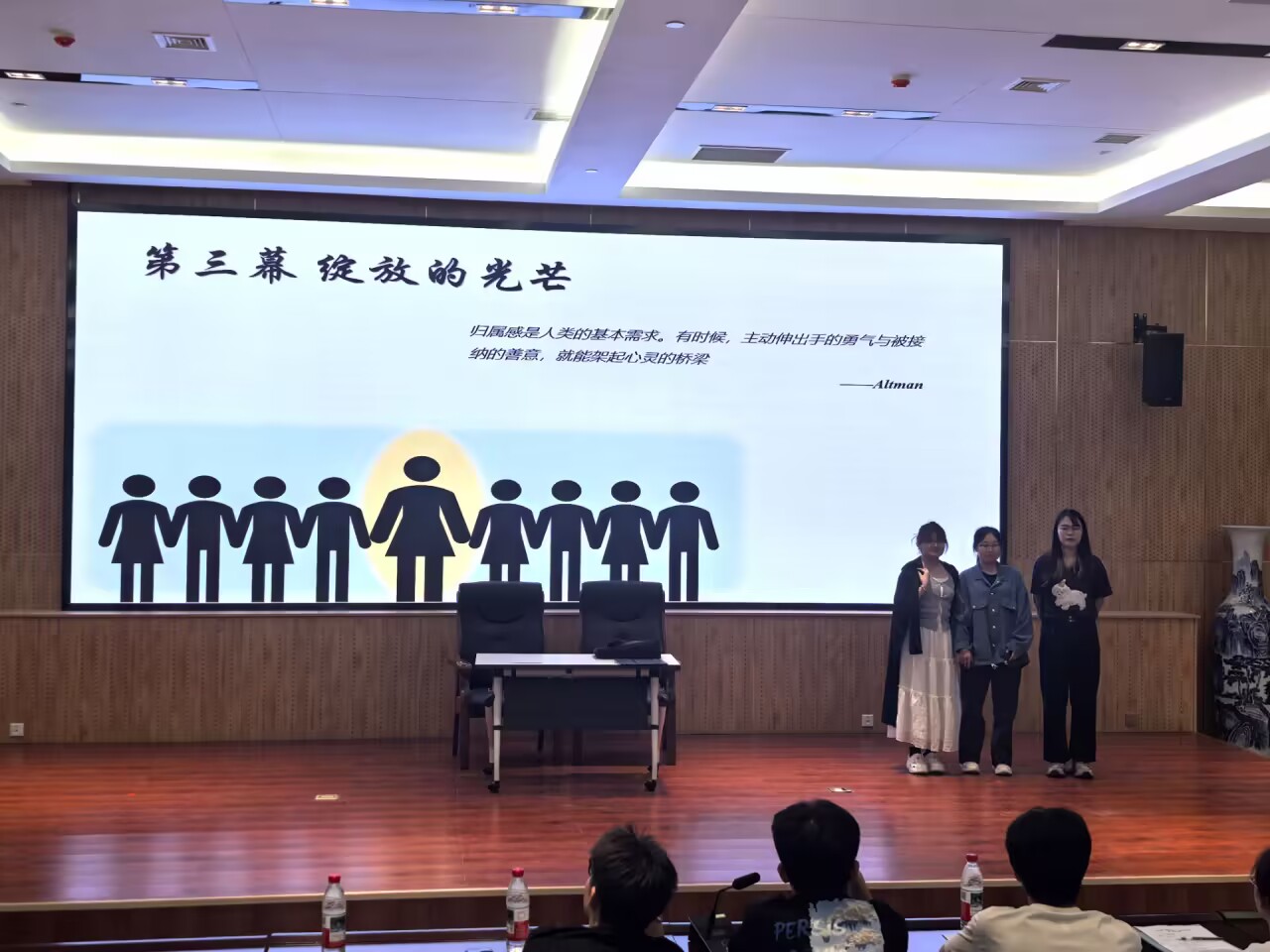 决赛现场精彩纷呈,三大模块环环相扣:"抢答拨心弦"环节中,选手们以敏捷的思维抢答心理学知识题目,展现了过硬的专业素养;"情景展心念"环节要求参赛队伍根据抽签的心理案例,自编自演3-5分钟的情景剧,通过生动演绎校园常见的社交焦虑、人际冲突等问题,既普及了心理健康知识,又呈现了创新解决方案;压轴的"分析解心结"环节,选手们化身"心理医生",对真实校园心理案例进行专业剖析,提出富有建设性的干预策略,彰显了理论与实践结合的能力。比赛特别设置的"祝福递心意"互动环节,让现场观众通过书写祝福便签传递温暖,形成心形祝福墙,将活动氛围推向高潮。
