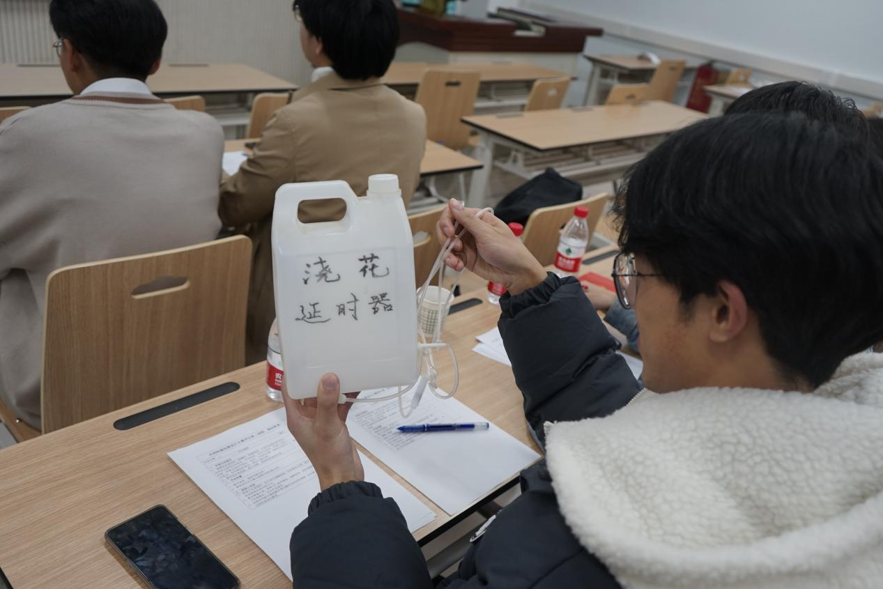 在主持人宣布初赛开始后,参赛成员陆续上台进行设计思路讲解、成果展示及答辩。其中由农水1901的田清照展示的作品令人耳目一新。田清照就自己设计的新型装置,从背景问题、功能原理和创新点三个方面展开了详细介绍。他条理清晰的答辩、科学严谨的数据展示获得了在场经久不息的掌声。其余参赛者的展示也颇具风格:演讲幽默诙谐、作品惊艳全场、图文结合展示……整个初赛的现场成了选手们大展身手的舞台。